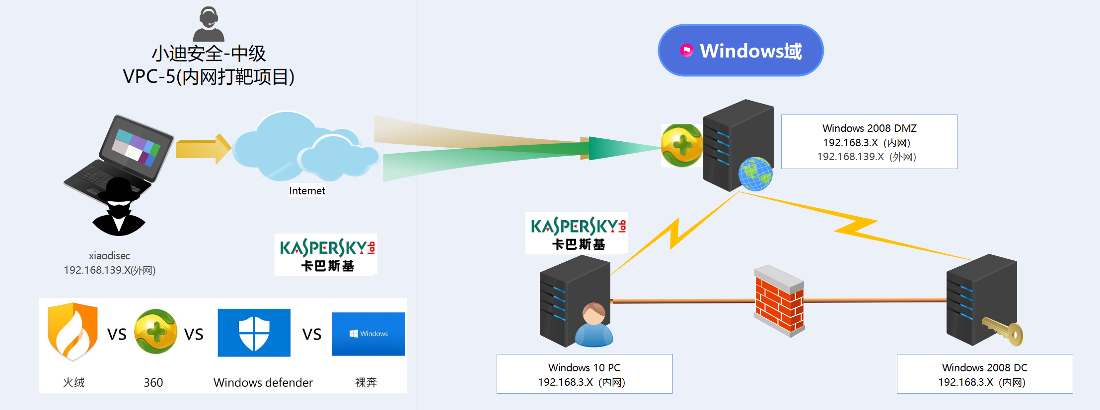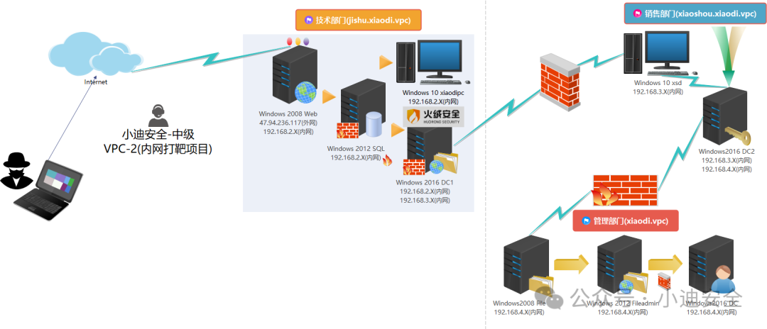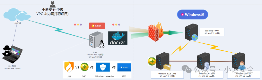 ## 列举课程中的部分靶场截图          ==VPC1-单域防火墙内网渗透==  ==VPC2-多域不出网X绒防护内网渗透==  ==VPC3-Linux多域X60有防火墙的内网渗透==  ==VPC4-Docker逃逸多防护不出网多手法复杂内网渗透==  ==VPC5-卡巴对抗多防护不出网绕过横向复杂内网渗透==  ``` VPC6-Webpack - JS泄漏 - 未授权 - API(swagger) - heapduamp利用 - 进入域 VPC7-Java安全 -Docker逃逸 - 翻出数据库配置(redis) - 内网主机 - 进入域 VPC8-Java安全 - 翻出云key(osskey) - 云服务主机 - 某客户端漏洞 - 进入域 VPC9-云服务安全 -ssrf- 元数据利用 -ak/sk利用 - 内网主机 - 进入域域 ```